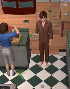 Day 17![]() Ever the bold soldier, GIIRyudo fights the War on Consciousness from his comfy La-z-Boy. Happy Holidays! ![]() I don't know what the fuck this thing is, or whether or not it's the wrong holiday, but it's pretty god damn cool. ![]() Good going, stupid. ![]() Oh, if only you could see how the green tendrils of ass rot caressed his face, almost lovingly, whilst he convulsed in agony. Half of a day went by with absolutely nothing worth interest happening. A fireman called for Otik and they talked until they were best friends. Kids left for school on time, guys left for work on time. The kitchen's still filthy, and grandma's still dead in her open grave out back. ObMeiste went out to get the mail, and then commenced discussing balls with the mailman. ![]() Ohh... no. ![]() ![]() Maybe he's pondering whether or not he still likes pussy? Well, I'll be. Nobuu's apparently here... and wtf... ![]() Otik is the one apologizing, even. Damn. When I put Nobuu in the pants and Otik in the skirt, I sure called that one. ![]() bdeetdeetBAWMP-BAWMP... Requisite cuteness alert! ![]() Ripley charges indoors with an A+ report card. ![]() I wish I could relate how cute Ripley's little bragging fit is. The proud father then ran upstairs to puke. GIIR not only got promoted, but apparently being bumped to 'head cage cleaner' netted him a blonde 'friend'. ![]() They choose to get acquainted over the garbage can. ![]() I think she just told him 'I like 'em fat.' Now I have Prince and the NPG's 'Get Off' stuck in my head. Wow, man, I'm beginning to think that Halloween cat's a fertility relic or something... Just as ObMeiste went to drop off trash, a Paris Hilton knock-off shows up, Ob ditches the trash and goes to greet. ![]() Ok that's nice. I wonder when the fuck we're going to get a premature fatality at this rate. ![]() Oh shit GIIR! DRAMA! ![]() I don't know what the hell originated the slapfight, I just heard slapping, hit pause, and there it was. The picture likely tells enough of the story. ![]() Once again, Otik apologizes. Rathen then answers the phone, says hi and bye to Marisa really fast, then... starts crying. ![]() Looks like someone could use some SimWellbutrin. Ripley researches the resonance mood altering device, eager to unlock the secrets of its mood- and mind-controlling capabilities. ![]() It's clear she's got a ways to go. | Day 18![]() She can't even catch a break from her dad, and he even looks like a guy that's comfy with torture. ![]() So he goes outside and attempts to suck the back of his fiance's skull out through her mouth. ![]() Really, ObMeiste, why don't you tell her how you actually feel. No holding back. I could've sworn he was yelling, "Bad jew! Bad jew!" at her... He heckled her for an hour, then helped Ripley, and then his own son with their homework. HOLY SHIT. ![]() Duey throws away a baby bottle! I'm fairly certain that one had been there since ForeverGray's childhood. Incidentally, only that bottle was thrown away. The rest still lay about. Oh, hell. ![]() That would be ObMeiste flirting with Otik... and Otik being receptive. OH MY GOD! ![]() ObMeiste's a fucking manwhore. That'd be him getting a fistfull of Duey's ass. It figures that the two diesel jocks in the house would be the first out of the closet. I'm also completely amused with Otik's 'that is so awesome' look in the background. ![]() Ok now I might puke. ![]() OH SHIT FG DON'T TURN AROUND! Looks like there's a DIFFERENT dart game gonna happen tonight, tell you what. Well, there you have it. Merry Christmas everybody, we have confirmed faggots. ![]() Ripley's still awful. ![]() That's not totally what's meant by "pillowbiters," guys. ![]() Death Toilet's on his third incarnation, and Rathen sinkbathes despite the perfectly working tub and shower upstairs. Interesting fact: From 12:30a to 5:30a. Nobuu would just show up, then almost instantly say 'Oh look at the time I have to go.' ![]() Death Toilet finishes his third incarnation. We haven't seen much out of Etcha lately. Here, I expected him to be the extrovert for that matter. ![]() So, here he is, eating cereal standing up, because nobody's cleaned off the table since yesterday. ![]() It's apparently 'sinkbath day'. I had one of those job dilemmas pop up for Etcha at his record store job. I apparently chose wisely and he got 2 charisma points. FG apparently got an A+ report card too, but instead of waking up his picklesniffing father, he just did a rather stupid little dance by Nobuu. ![]() No wait, my bad. He's dancing that way because he WANTS to. It's just incidental that he has an A+ report card and didn't see fit to wake up his picklesniffing father. ![]() Rathen finishes some cereal and spontaneously cries. Rathen then went to the bathroom. And cried. Ripley came home, they played 'red hands' for a moment. And then he cried some more. He's fucked up. ObMeiste and Otik had a little pillowfight, and became best friends thereafter. Where was Rathen? Upstairs in the bathroom, crying like a bitch. ![]() Otik at it yet AGAIN with the sinkbath. ![]() This picture here contains quite a few things. One, I think GIIR's praying that that blonde piece of tail calls him. Two, Marisa's playing has improved since yesterday clearly- FG's dancing like a jackass over to her right, and both Ripley and Otik, playing against eachother on the game system, will periodically cheer at her. Closing comments- the homos did pick the same bed and spooned, but the whole thing was platonic. It looked like the inspiration for an Alanis Morrisette song. | |